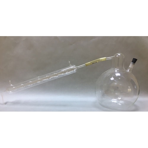 Состав дистиллятора: колба плоскодонная, холодильник восьмишариковый.